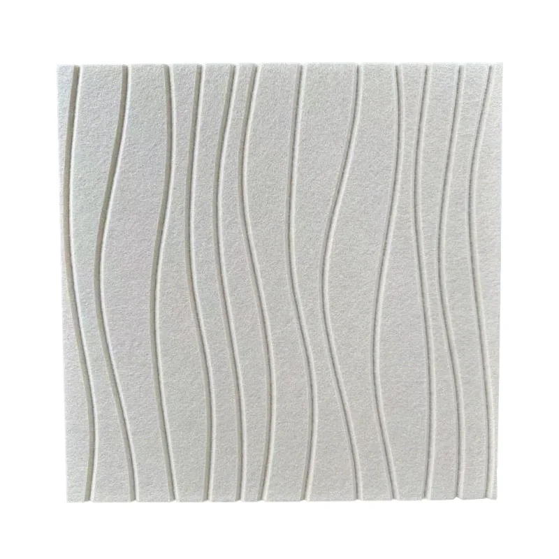 Naše béžové akustické panely Water Wave PET Felt využívajú pokročilú technológiu tepelného spájania a vpichovania, aby sa zabezpečila vynikajúca odolnosť a akustický výkon. Každá šarža produktov prechádza prísnym testovaním kvality, aby sa zabezpečila konzistentnosť a vysoké štandardy.