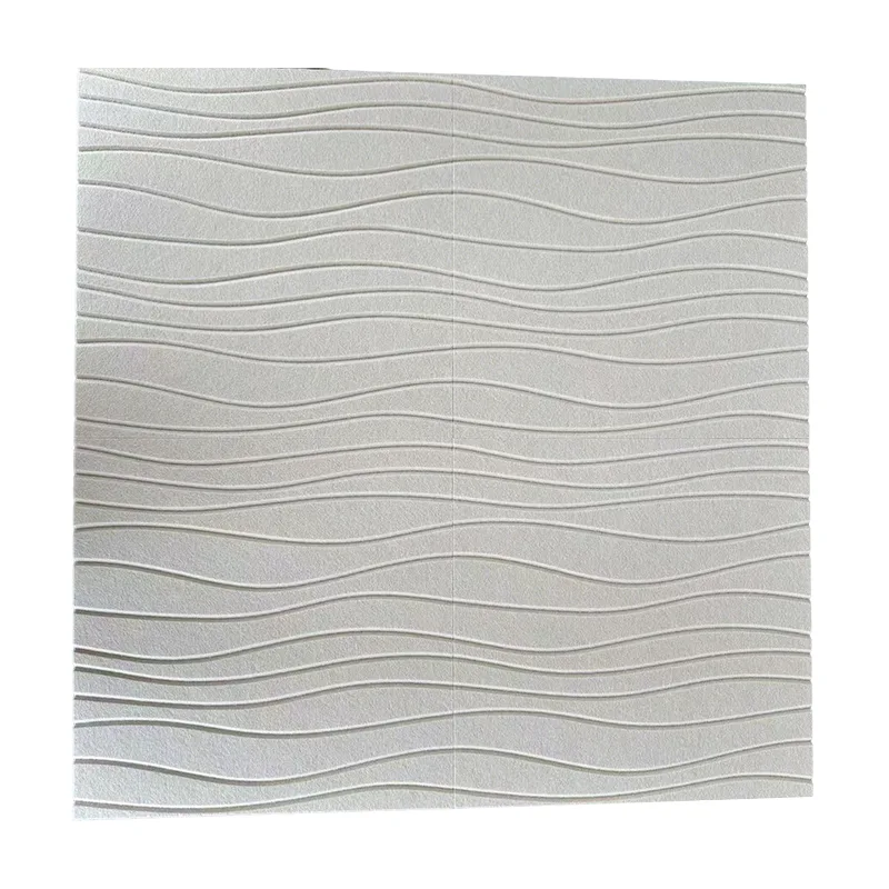 2. Vysokoúčinná absorpcia zvuku: Základný proces „vpichovania“ je naším technickým tajomstvom. Mikropórová matrica vytvorená tisíckami vpichov umožňuje akustickému panelu Beige Wave PET Felt Acoustic Panel dosiahnuť koeficient absorpcie zvuku nad 0,8 pri špecifických frekvenciách (so vzduchovou dutinou). Jeho používanie môže výrazne skrátiť dobu dozvuku v interiéri, vďaka čomu bude reč čistejšia, hudba čistejšia a prostredie tichšie. 3. Šetrné k životnému prostrediu: Náš akustický panel z béžovej vlny PET obsahuje viac ako 50 % recyklovaných polyesterových vlákien a samotný produkt je na konci svojho životného cyklu recyklovateľný.